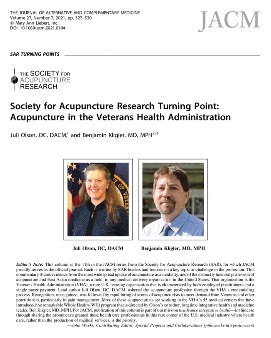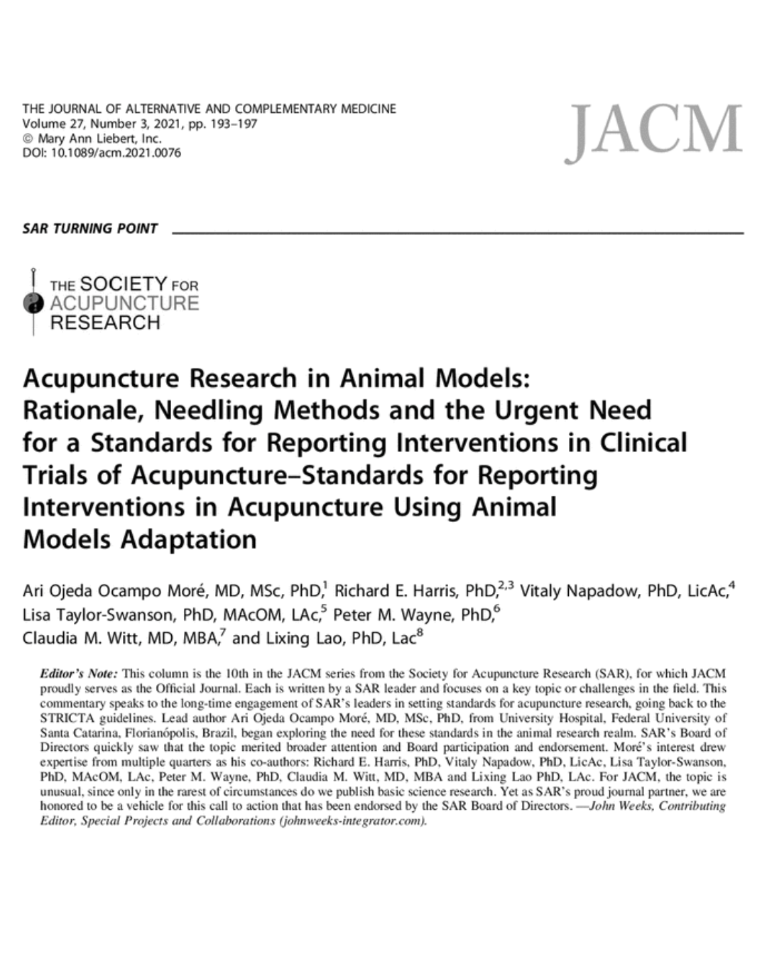 This is a series from the Society for Acupuncture Research (SAR), for which the Journal of Integrative and Complementary Medicine (JICM) serves as the official journal. Each column is written by SAR leaders and focuses on a key topic or challenge for the profession.